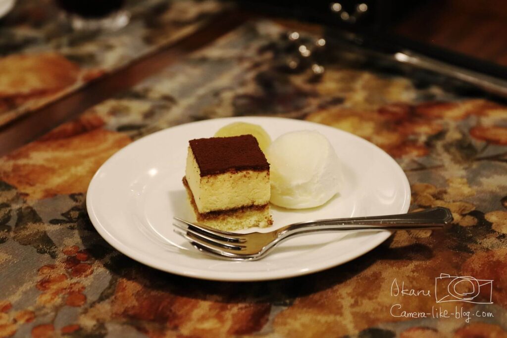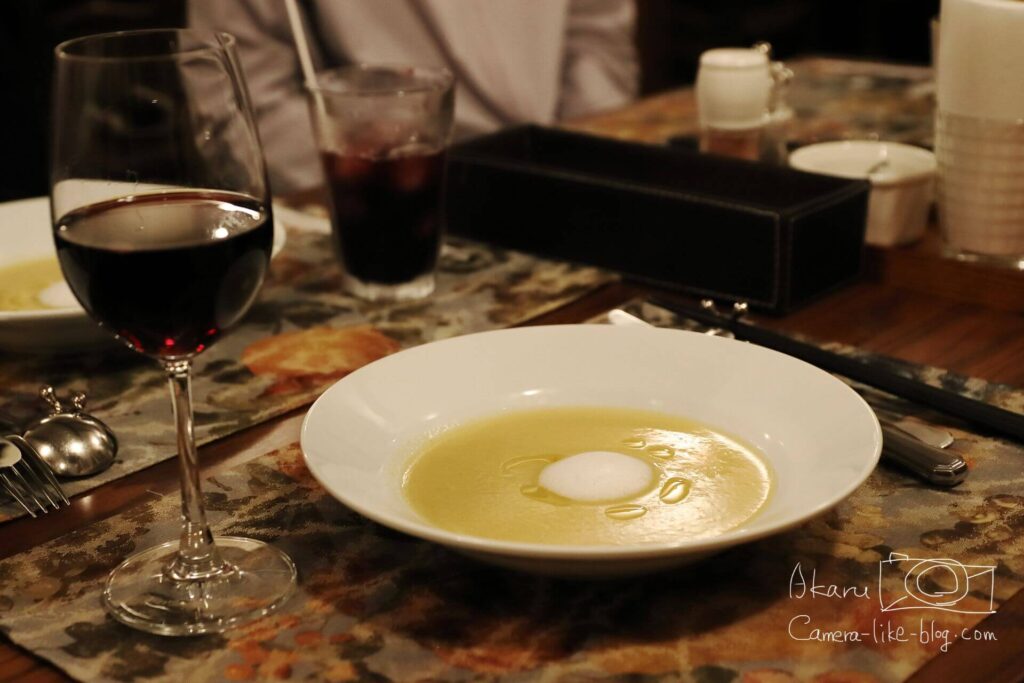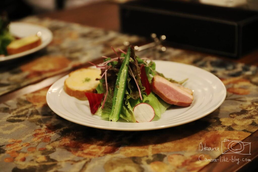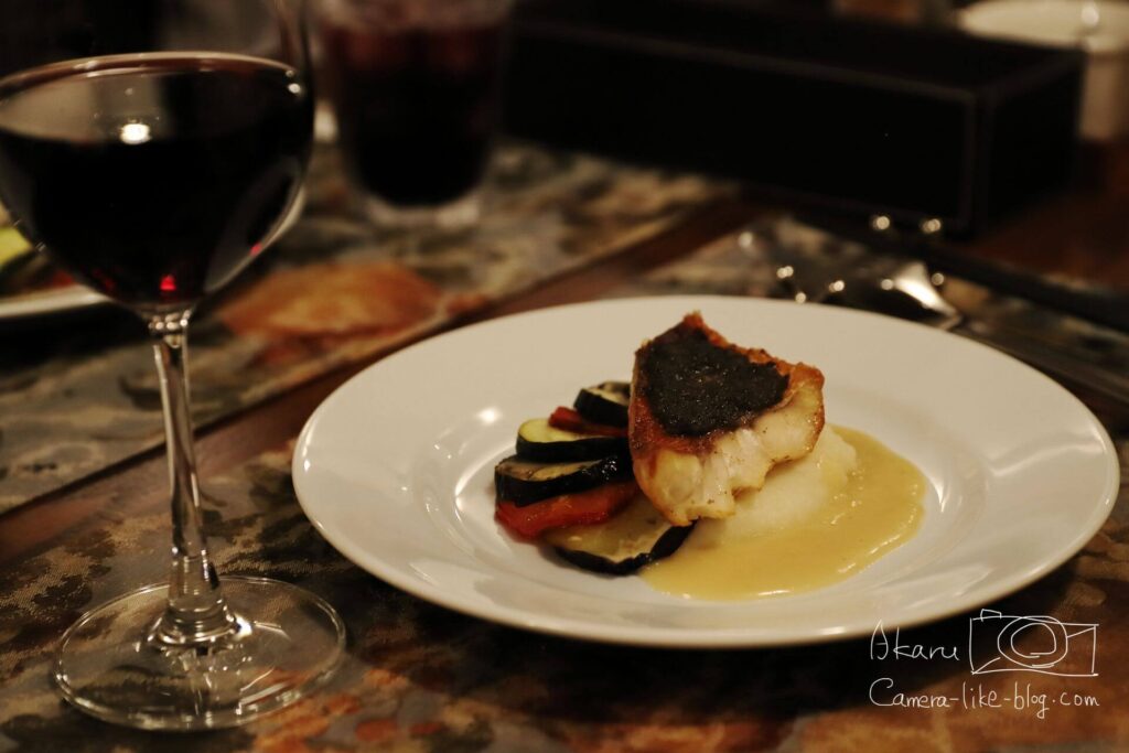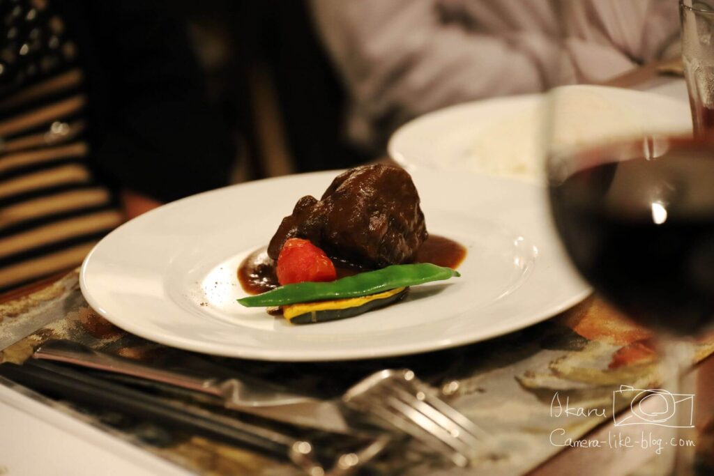 レストランは雰囲気がよく、光を抑えた間接照明だったので、もし持参するなら明るいレンズのほうが有利だと思いました。