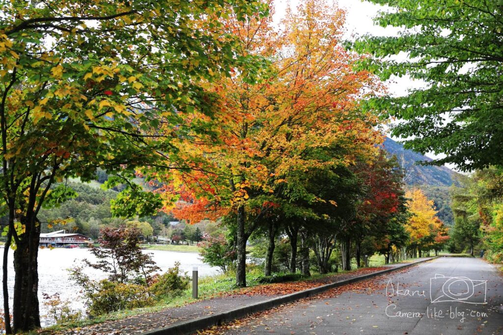 訪れたのは秋だったので、まわりの木々も色づいていて、湖と紅葉の組み合わせがとてもきれいでした。