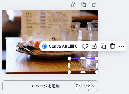あとはカレーの画像をまずキャンバスにドラッグ&ドロップし、キャンバスにぴったりサイズを合わせます。その後ウォーターマークを同じようにドラッグ&ドロップし、サイズを整えて好きなところに配置します。