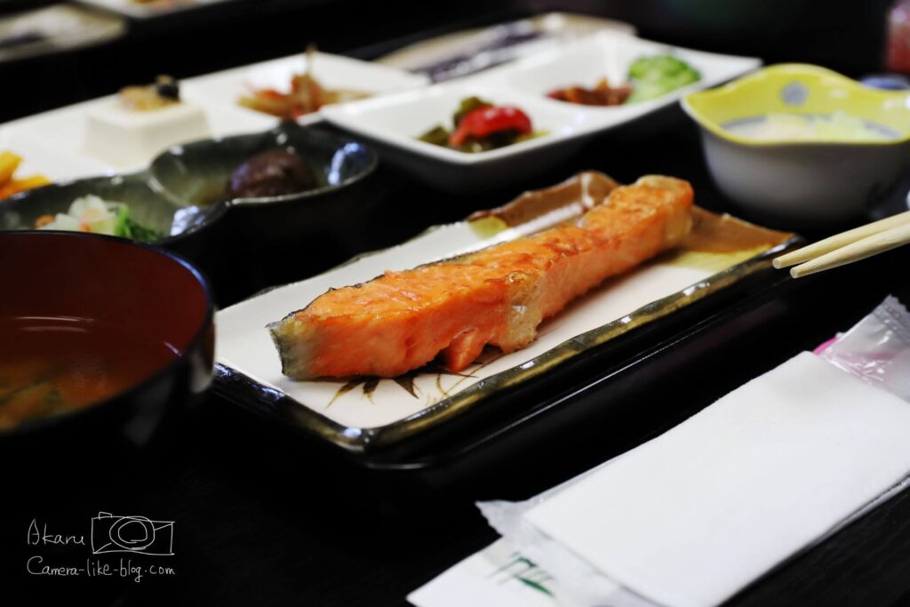 今回の旅館の焼き鮭は絶妙な焼き加減による香ばしさがよかったです。